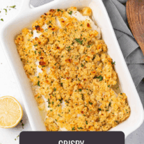 I live in New England, and I eat a lot of seafood, including codfish. This is by far the best cod fish recipe I have ever found online. I must confess, however, I couldn’t help but add bay scallops and chopped shrimp to the bread crumb topping. UNBELIEVABLE flavor!